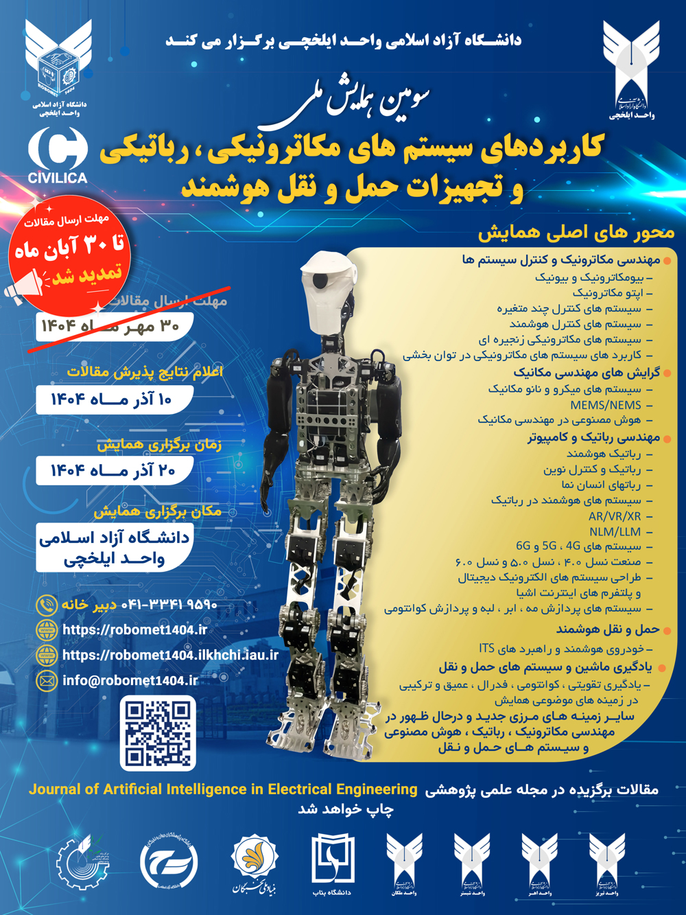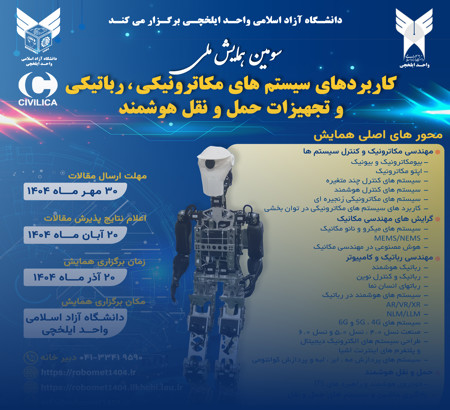 سومین دوره «همایش کاربردهای سیستم های مکاترونیکی، روباتیکی و تجهیزات حمل و نقل هوشمند» در سال ۱۴۰۴ با شعار«پیشرفت های سیستمی در عصر هوش مصنوعی»،